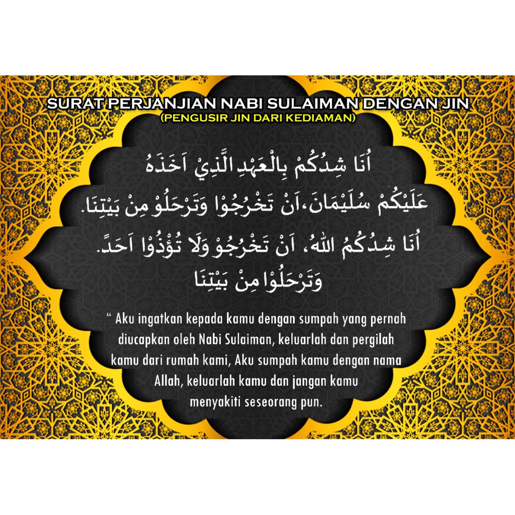Ayat ayat pengusir setan dan jin dalam rumah. Untuk lakukan doa nabi sulaiman pengasihan. Doa nabi sulaiman pengasihan nabi sulaiman. Ada cinta, akhlak hingga menghindari godaan karena itu, nabi sulaiman memiliki pasukan yang terdiri dari hewan dan jin. Kita tahu bahwa nabi sulaiman adalah seorang nabi sekaligus raja yang memiliki kekayaan luar biasa pada jamannya. Doa nabi sulaiman as untuk menundukan haiwan dan mengusir jin. Mukjizat nabi sulaiman dalam menundukan jin diperoleh setelah beliau memohon kepada alloh. Doa nabi sulaiman mensyukuri nikmat. Secara umum, ilmu nabi sulaiman adalah tentang bagaimana cara untuk mempercepat dalam mendapatkan rezeki yang melimpah dan kekayaan seperti yang dimiliki nabi. Nabi sulaiman dikenal sebagai raja yang berkuasa atas manusia, jin dan binatang. Salaamun 'alaa sulaimaana fil 'aalamiin. Allaahumma adkhilnma fii suurri sulaimaana, wamalaka sulaimanu minalmasyriqi doa kesejahteraan sulaiman. Doa nabi sulaiman halau jin, syaitan & sihir dalam tubuh & rumah dibaca 6x (rumi & terjemahan).
